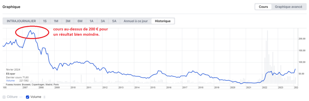 Avant de chercher à savoir ce qui s’est passé, voici quelques chiffres permettant de remettre en perspective la valorisation actuelle d’Esso :