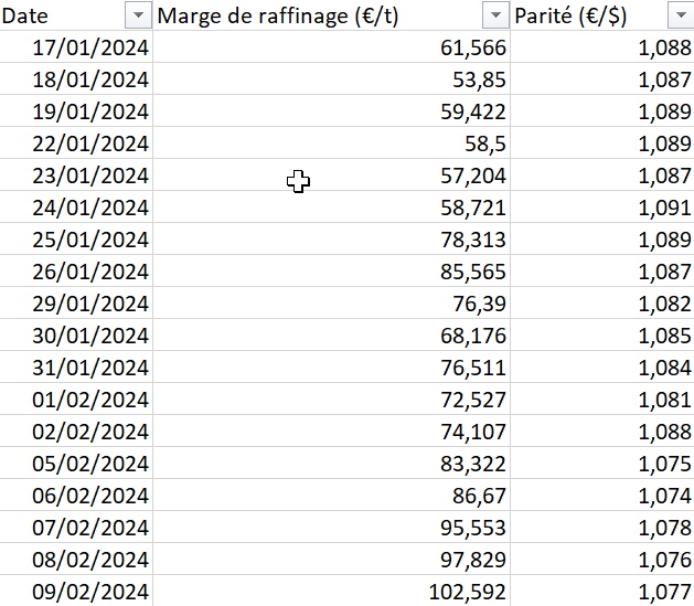 L’UFIP publie régulièrement les marges de raffinage sur cette adresse. Voici ce que nous indiquent les marges pour ce mois de Février :